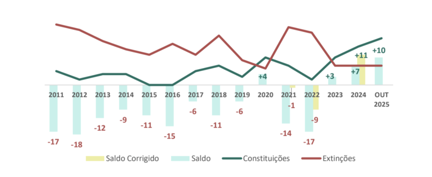 Entre 2011 e outubro de 2025, o setor das cooperativas de habitação e construção em Portugal registou, de forma geral, uma evolução negativa no número de cooperativas, refletindo um saldo global negativo entre constituições e extinções.