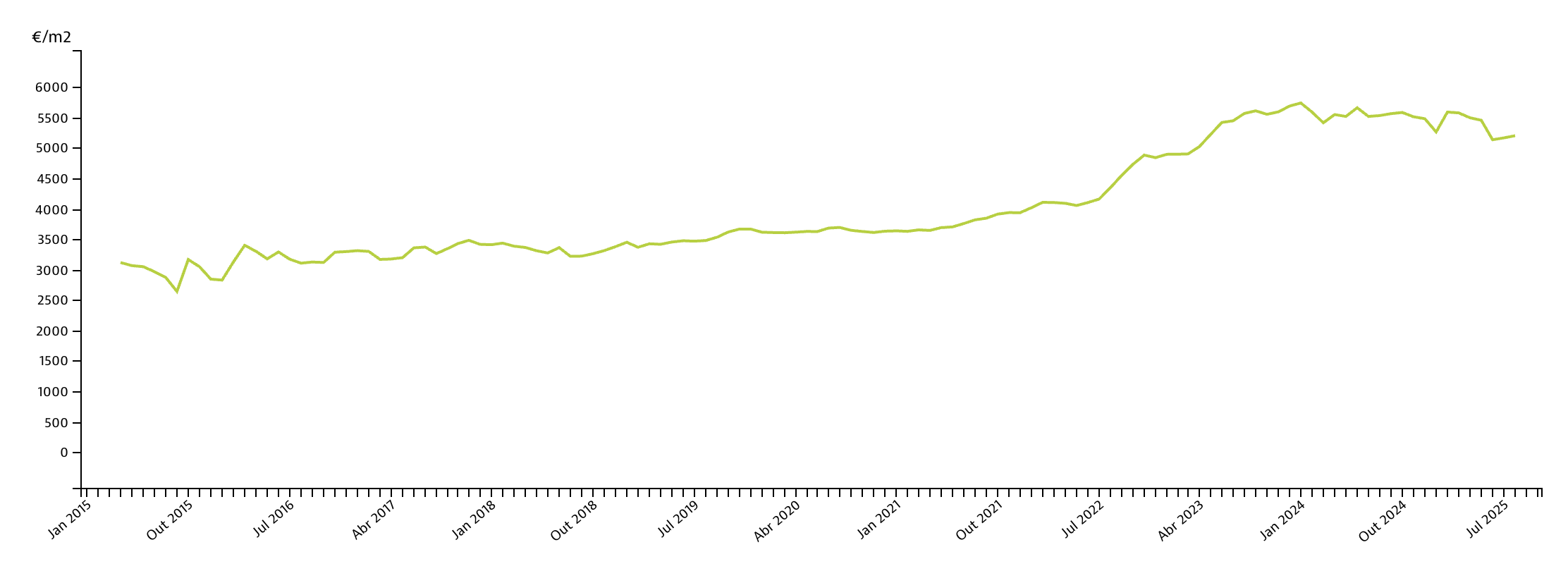 Gráfico com a evolução do preço do metro quadrado no Carvalhal.