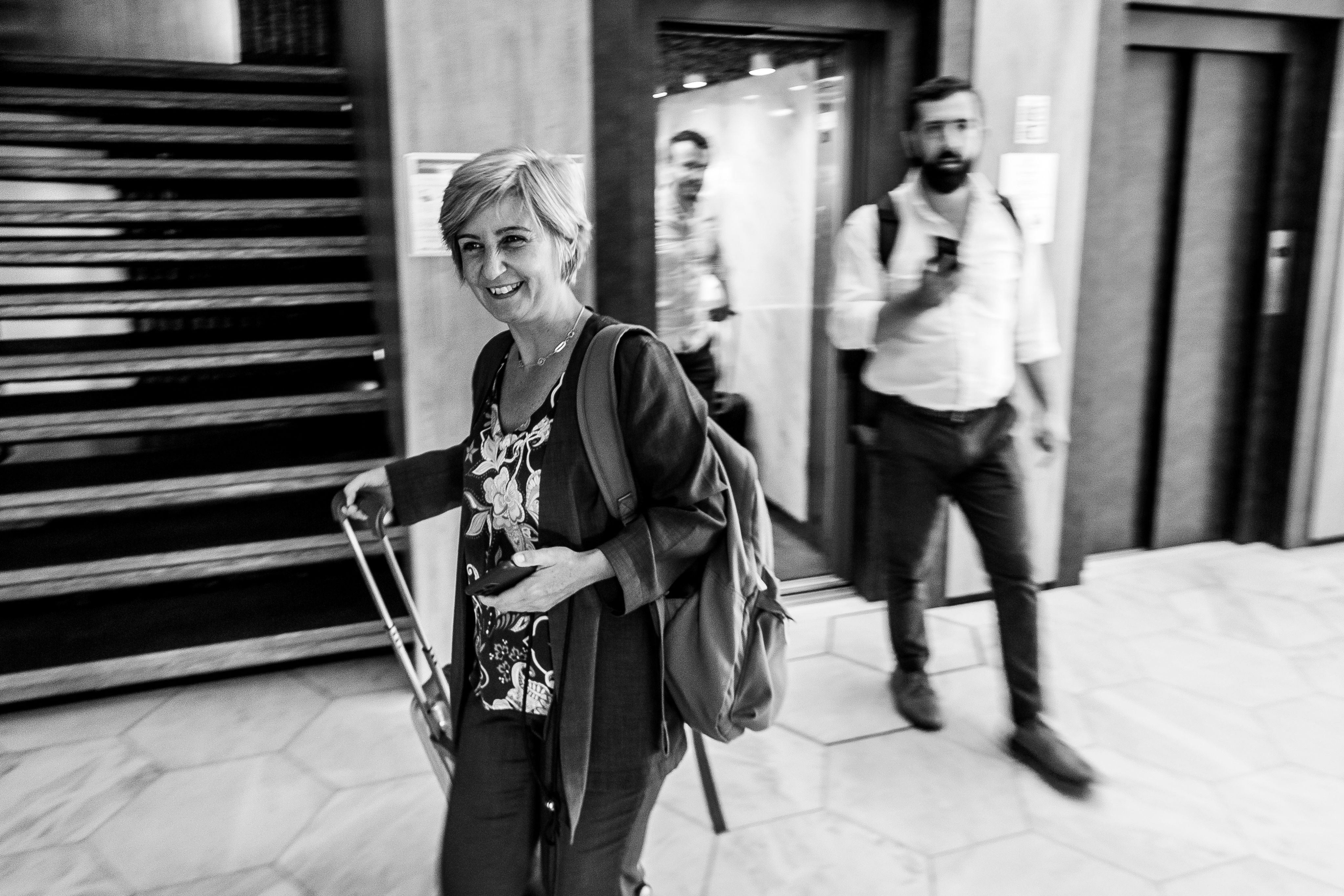 São 10h26 da manhã de terça-feira quando o elevador do lóbi de um três estrelas de Viana do Castelo se abre para deixar sair Marta Temido, de fato azul de linho e blusa florida, com uma mochila cinzenta Converse às costas e uma mala de viagem aos pés. Do cubículo de espelho e mármore saem ainda dois elementos da equipa socialista, que dão tempo para que a ex-ministra da Saúde caminhe sozinha até ao balcão onde ela própria faz o check-out e garante ao recepcionista, que recebe alegremente a chave do quarto 509, que passou bem a noite.