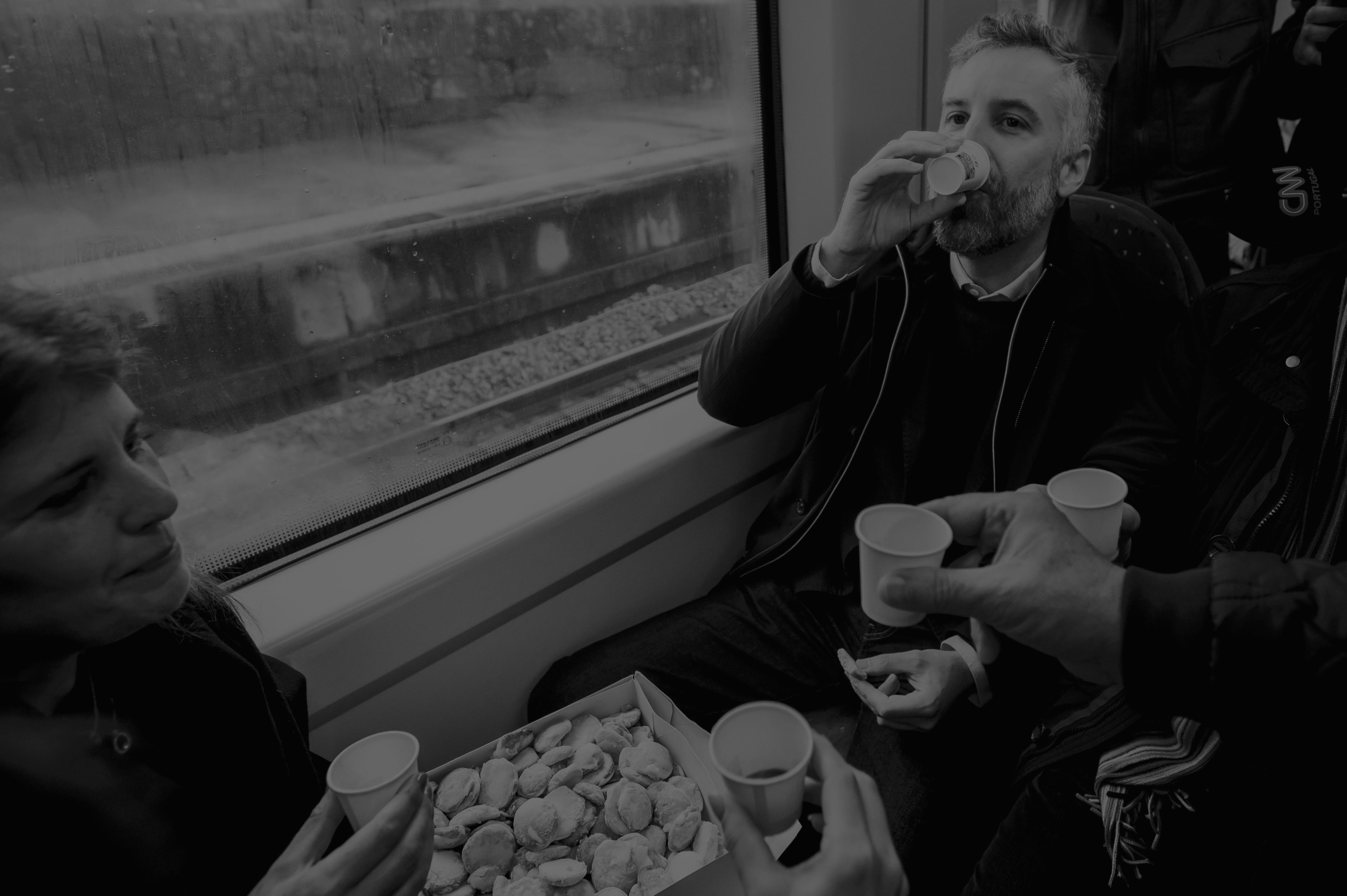 São 08h43, dia 4. É o 9º da campanha e o 2º em que o Polígrafo acompanha o líder dos socialistas. Enquanto o “ministro dos comboios” não chega, a galhofa é total: frente à carruagem parada na linha do Douro - a “casa de partida” é Marco de Canaveses - tudo se assemelha a uma visita de estudo. Os jovens que ali se juntam ainda não sabem se vão precisar de um bilhete para a viagem e isso está a chateá-los. A indignação, porém, não dura muito. É dia de festa.