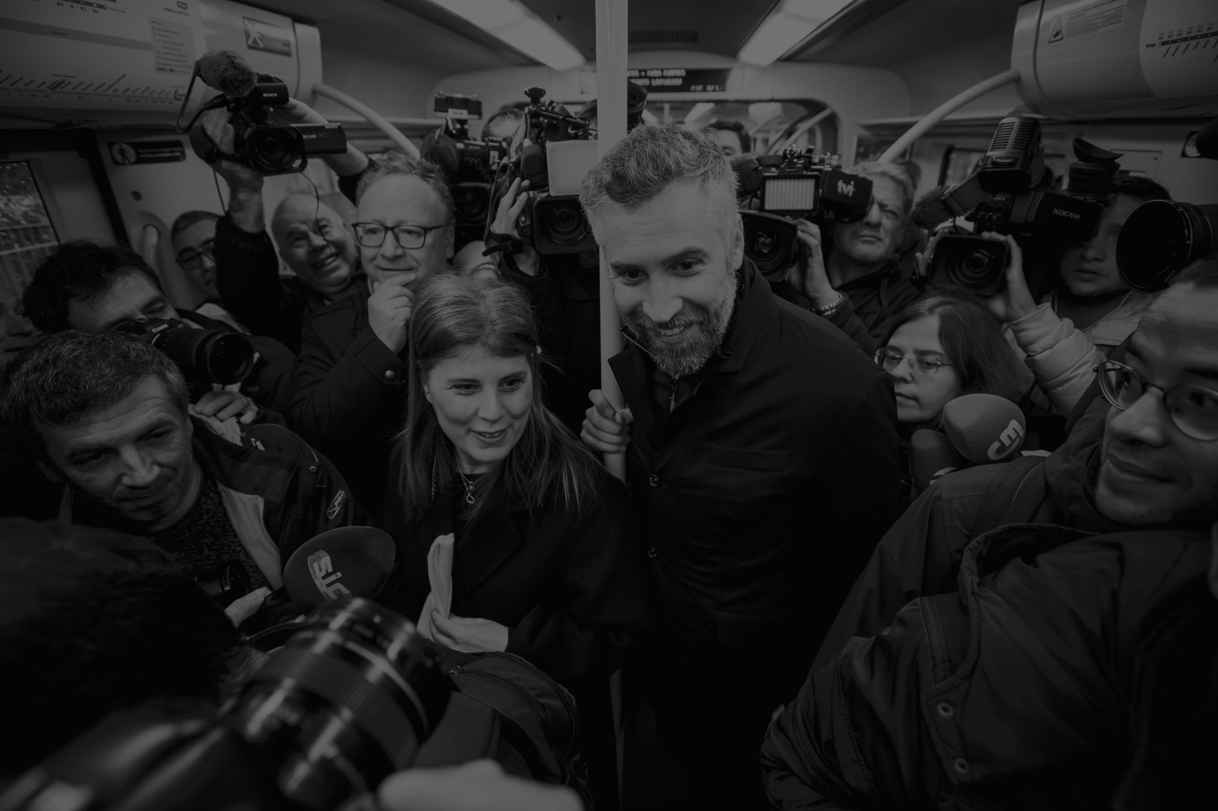Pedro Nuno garante que não mente, pelo menos com má-fé. Quem seguramente não o faz são os ponteiros do relógio. O comboio chega quatro minutos atrasado à estação de Campanhã, onde um taxista enfurecido pelo amontoado de gente se vai recusar, dali a minutos, a parar o carro numa passadeira para que a caravana avance. Nem os gritos de indignação o fazem travar: o carro verde-escuro chega mesmo a colar-se aos corpos de três ou quatro pessoas: está impaciente, quer seguir caminho.