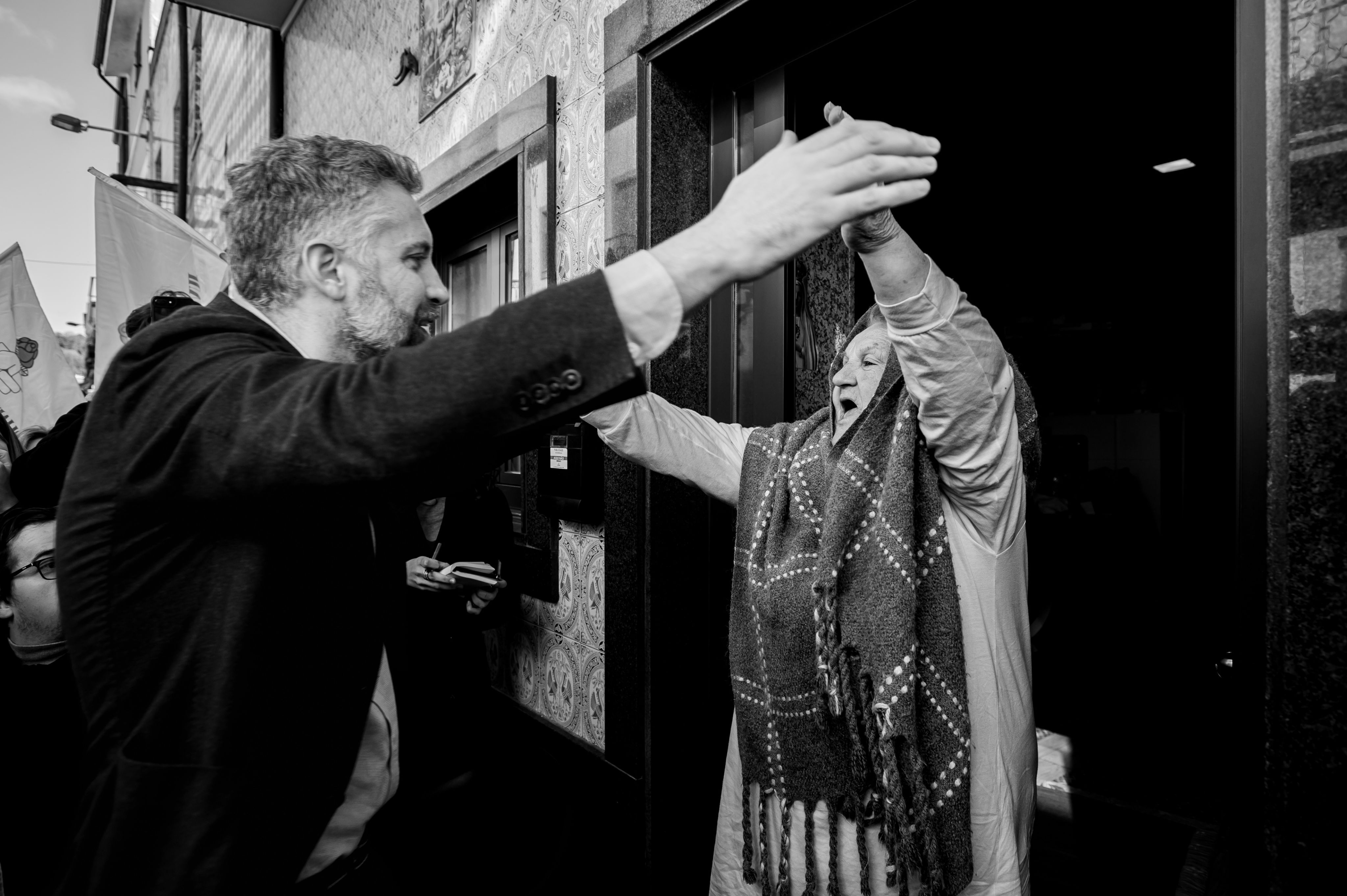 O líder do PS está pronto para a segunda ronda de cumprimentos. Estaria igualmente preparado para o primeiro contratempo? “Vocês é tudo a roubar. Andei 40 anos a descontar para agora ganhar 300 euros”, vocifera João Baptista, 65 anos e óculos escuros a compor um visual amplamente arrojado. Surpreendido, Pedro Nuno vai à luta – e socorre-se de uma arma clássica dos socialistas: o aumento das pensões verificado nos últimos oito anos de governação.