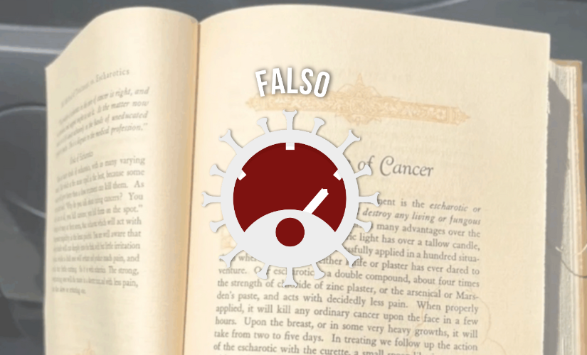 Circula no TikTok uma imagem de um livro antigo que promete curar o cancro com uma “pasta escariótica” de arsénio ou zinco. O método, criado por Perry Nichols no início do século XX, baseava-se na falsa ideia de que o cancro é um fungo. Segundo o Cancer Research UK, isso é falso e o tratamento não funciona.